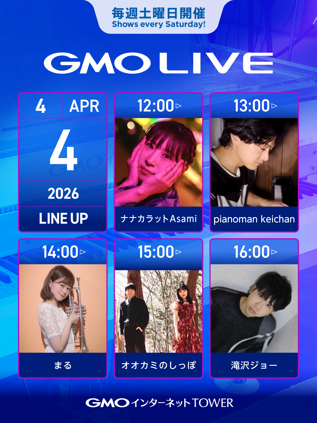 GMO LIVEでは、多くの才能あるミュージシャンたちの活動機会をサポートいたします。事前審査の上、ミュージシャン登録いただいた方々に、毎週土曜日にGMOインターネットTOWERのクリスタルピアノをはじめ、敷地内の複数の場所でギターやヴァイオリンなどさまざまな楽器を演奏していただくイベントです。 ミュージシャン自身によるインターネット上での演奏動画公開を参加条件とすることで、遠方の方にもオンラインで演奏を楽しんでいただいています。 詳細はオフィシャルサイトをご確認ください。